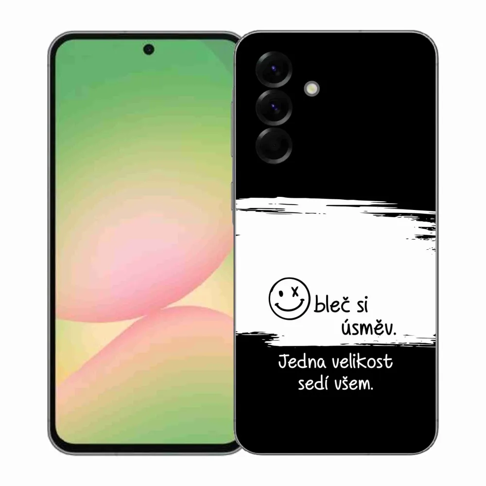 Pružný gelový obal mmCase s obrázkem na Samsung Galaxy A57 5G - vtipný text 8 bíločerné pozadí