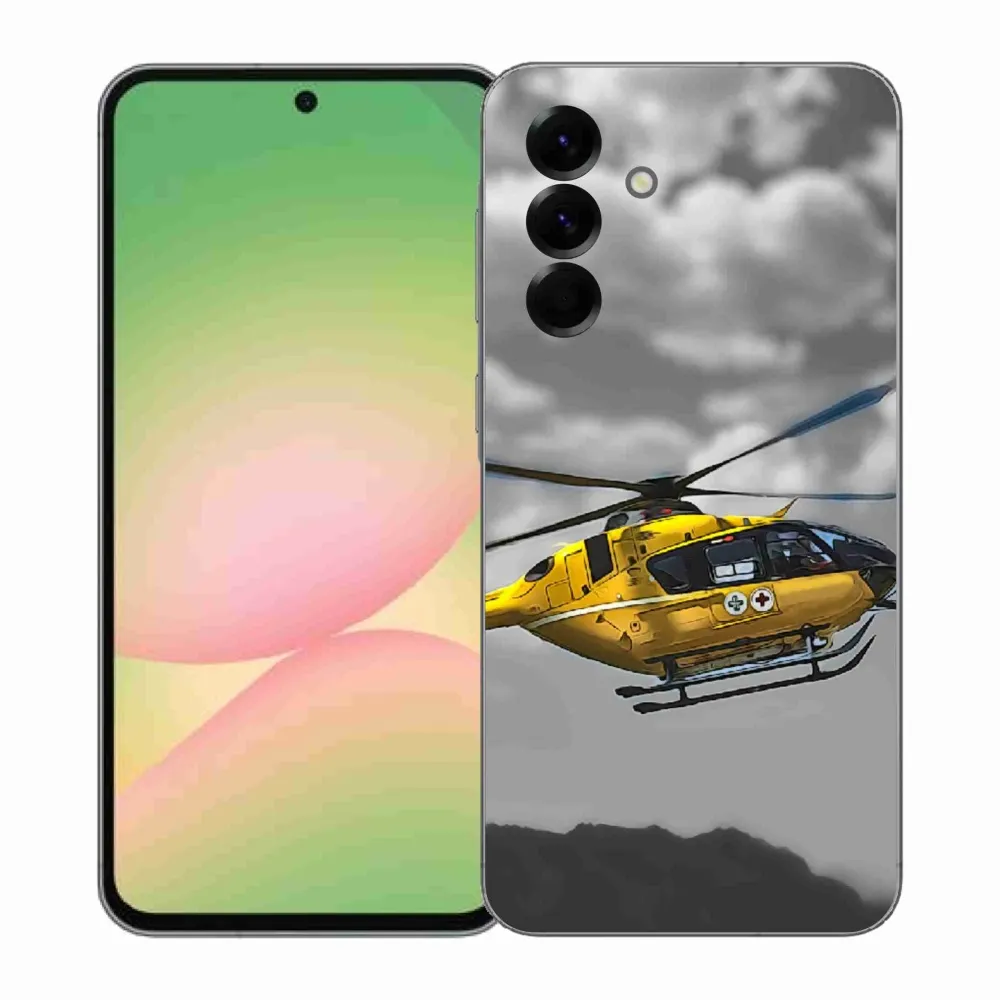 Pružný gelový obal mmCase s obrázkem na Samsung Galaxy A57 5G - žlutá helikoptéra