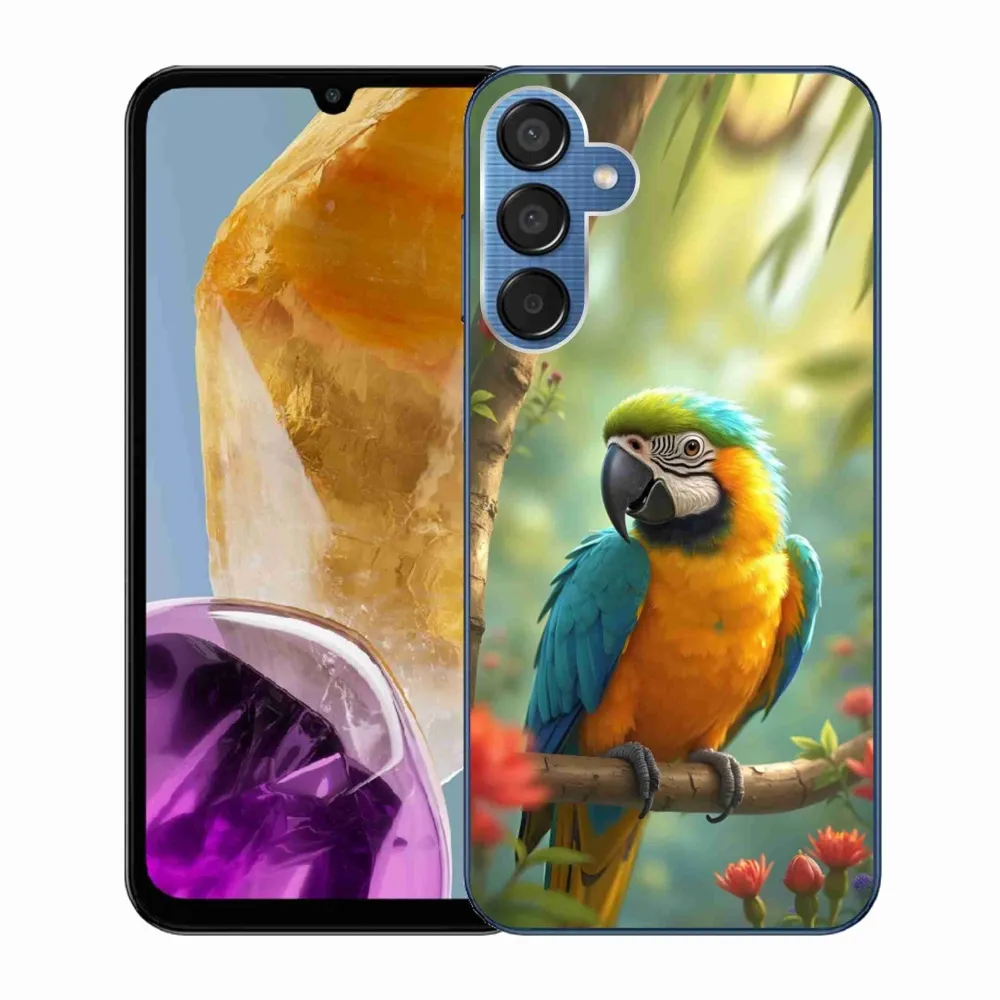 Gelový kryt mmCase na Samsung Galaxy M15 5G - papoušek ara modrožlutá