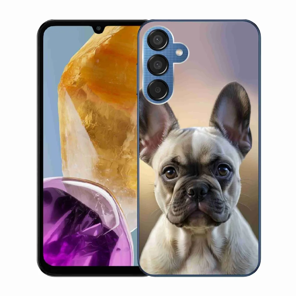 Psí pouzdro na Samsung Galaxy M15 5G - roztomilý francouzský buldoček poskytuje všechny výhody gelových obalů, a to v zajímavém designu.