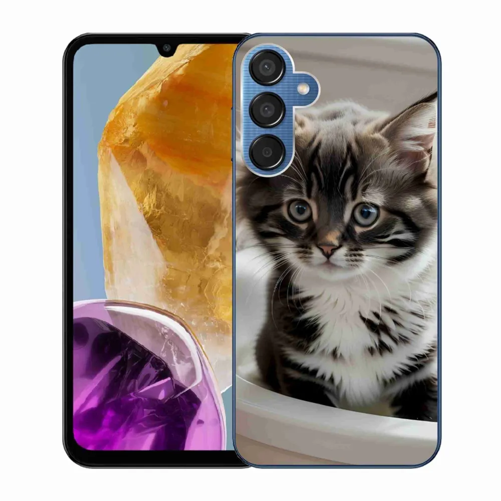 Kočičí pouzdro na Samsung Galaxy M15 5G - zvědavé kotě poskytuje všechny výhody gelových obalů, a to v zajímavém designu.