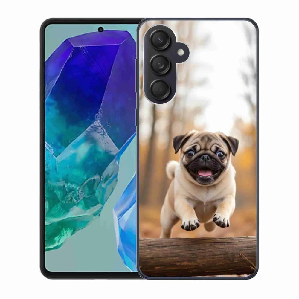 Psí pouzdro na Samsung Galaxy M55 5G - mops 2 poskytuje všechny výhody gelových obalů, a to v zajímavém designu.