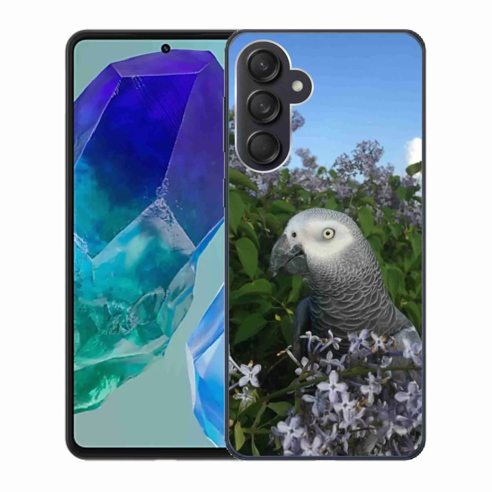 Pružný gelový obal mmCase s obrázkem na Samsung Galaxy M55 5G - papoušek žako