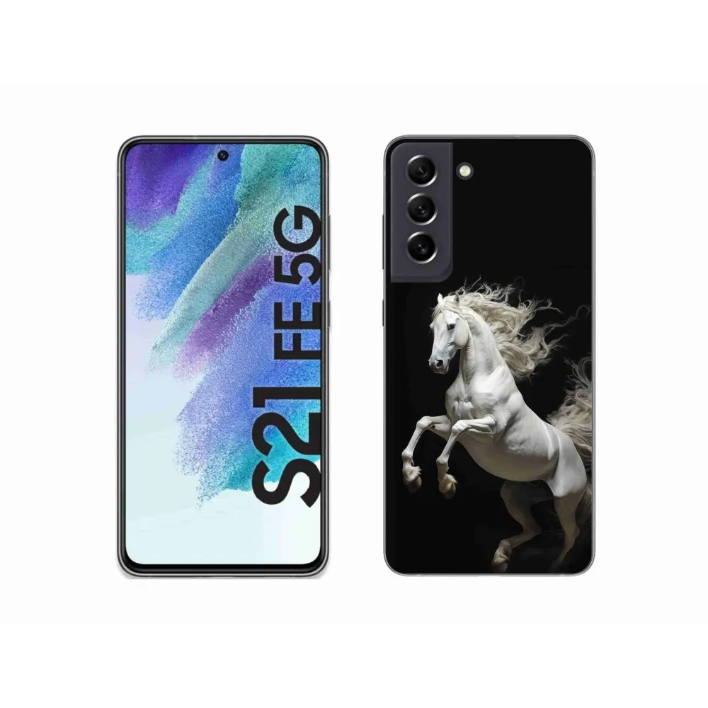 Pružný gelový obal mmCase s obrázkem na Samsung Galaxy S21 FE - bílý kůň 4