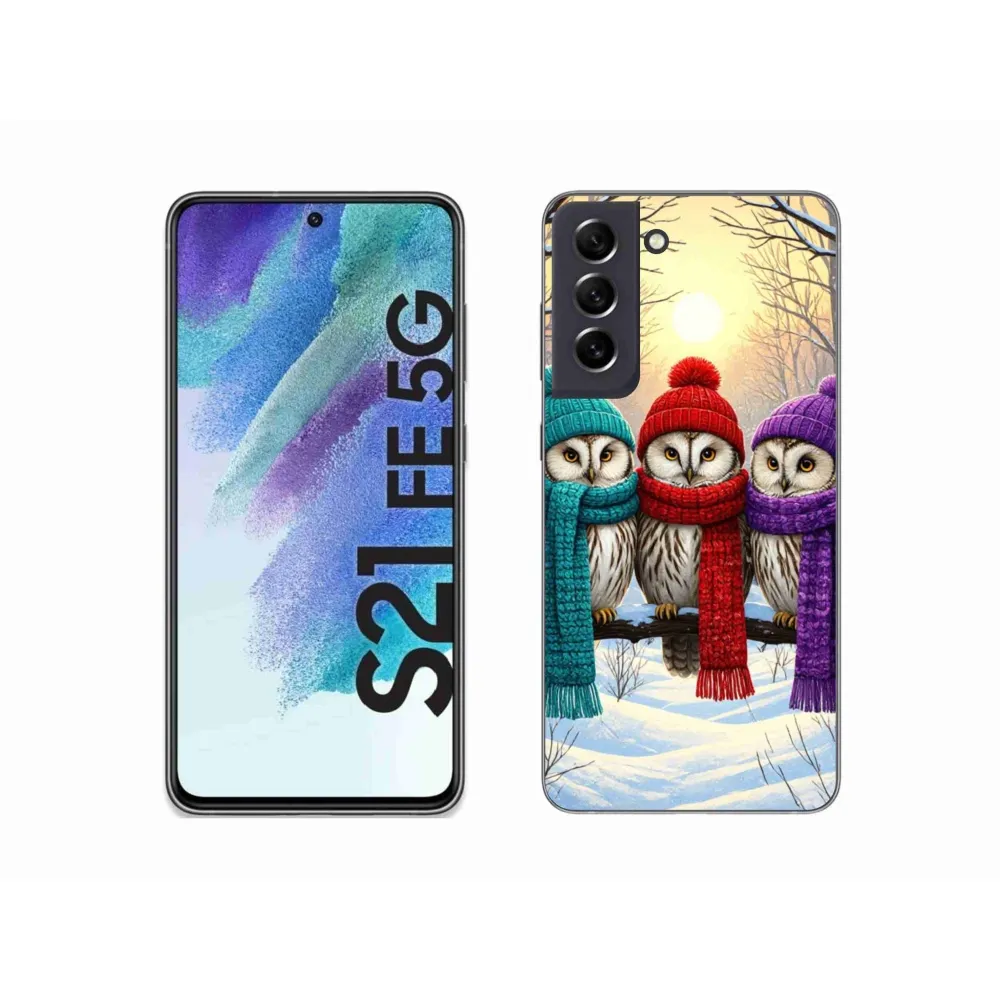 Vánoční pouzdro na Samsung Galaxy S21 Fe - soví přátelé poskytuje všechny výhody gelových obalů, a to v zajímavém designu.