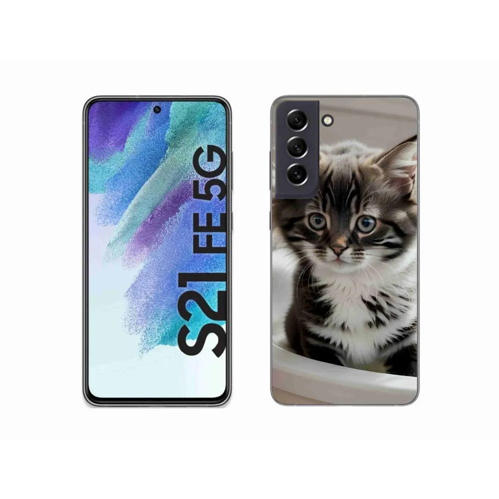 Kočičí pouzdro na Samsung Galaxy S21 Fe - zvědavé kotě poskytuje všechny výhody gelových obalů, a to v zajímavém designu.