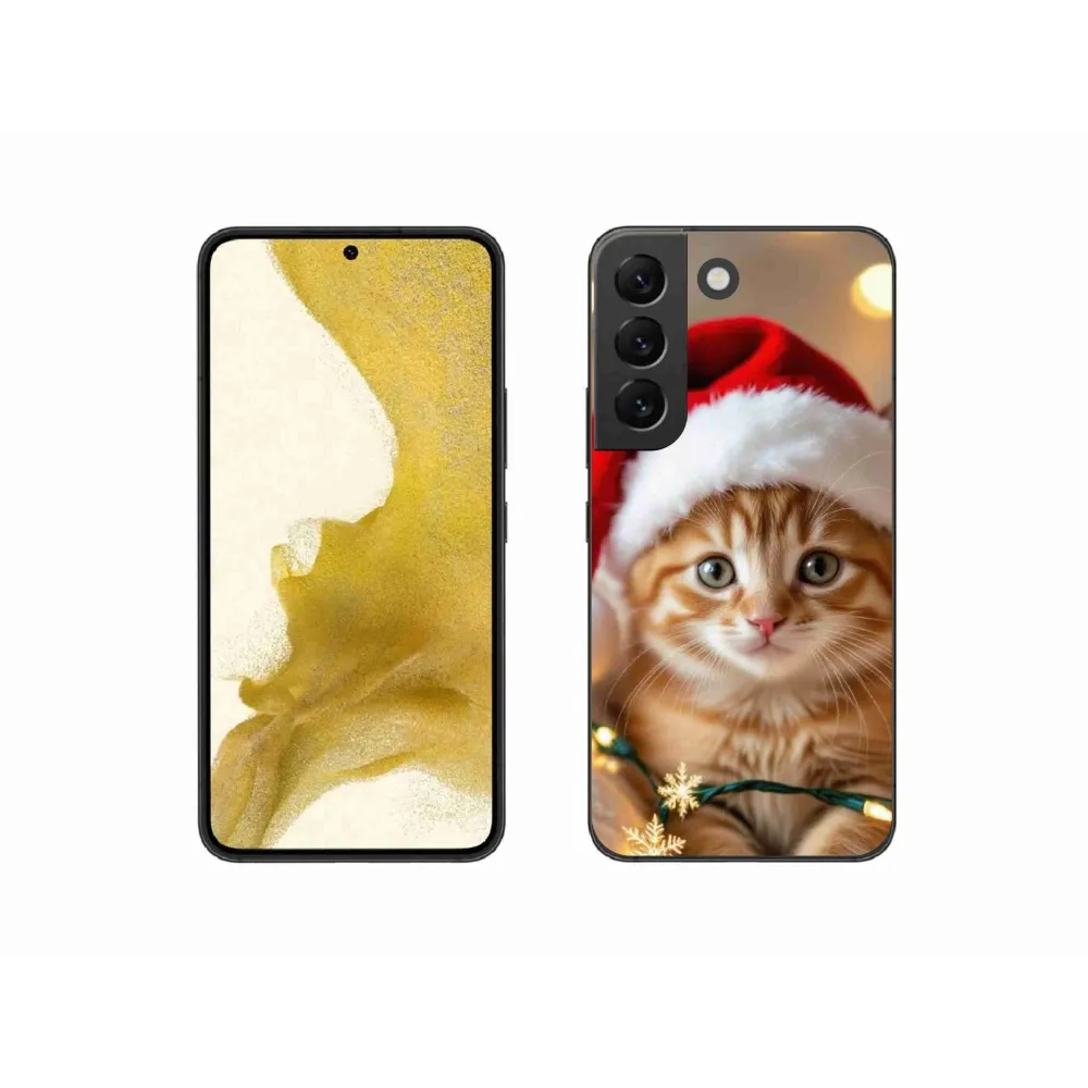 Vánoční pouzdro na Samsung Galaxy S22 5G - vánoční kotě poskytuje všechny výhody gelových obalů, a to v zajímavém designu.