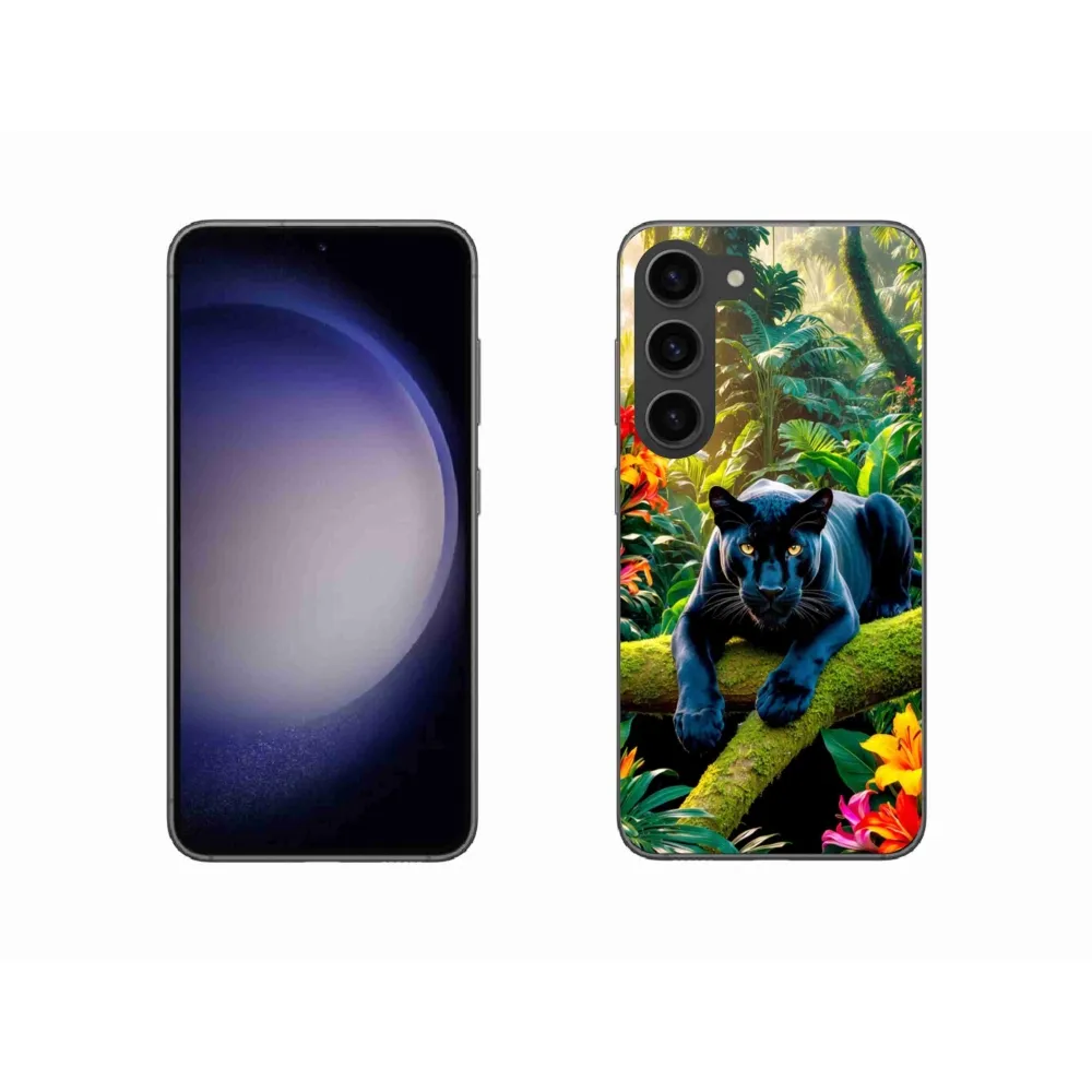Zvířecí pouzdro na Samsung Galaxy S23 5G - černý panter v džungli poskytuje všechny výhody gelových obalů, a to v zajímavém designu.