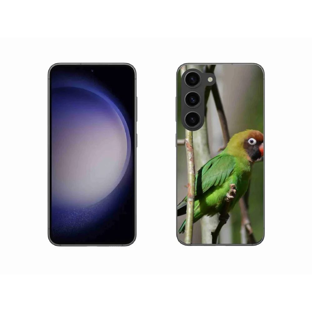 Zvířecí pouzdro na Samsung Galaxy S23 5G - papoušek agapornis poskytuje všechny výhody gelových obalů, a to v zajímavém designu.