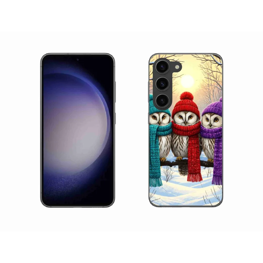 Vánoční pouzdro na Samsung Galaxy S23 5G - soví přátelé poskytuje všechny výhody gelových obalů, a to v zajímavém designu.