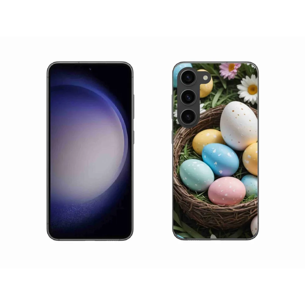 Velikonoční pouzdro na Samsung Galaxy S23 5G - velikonoční vajíčka 2 poskytuje všechny výhody gelových obalů, a to v zajímavém designu.