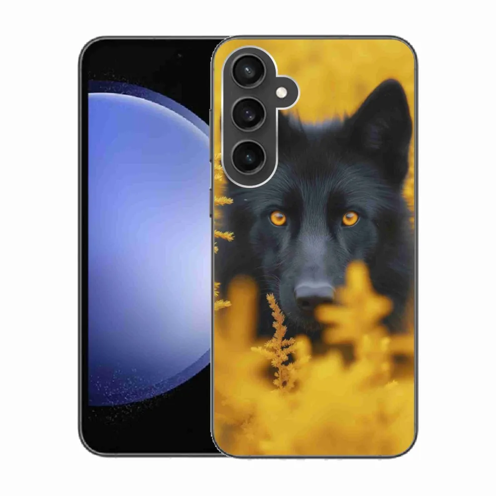 Pružný gelový obal mmCase s obrázkem na Samsung Galaxy S23 FE - černý vlk 2