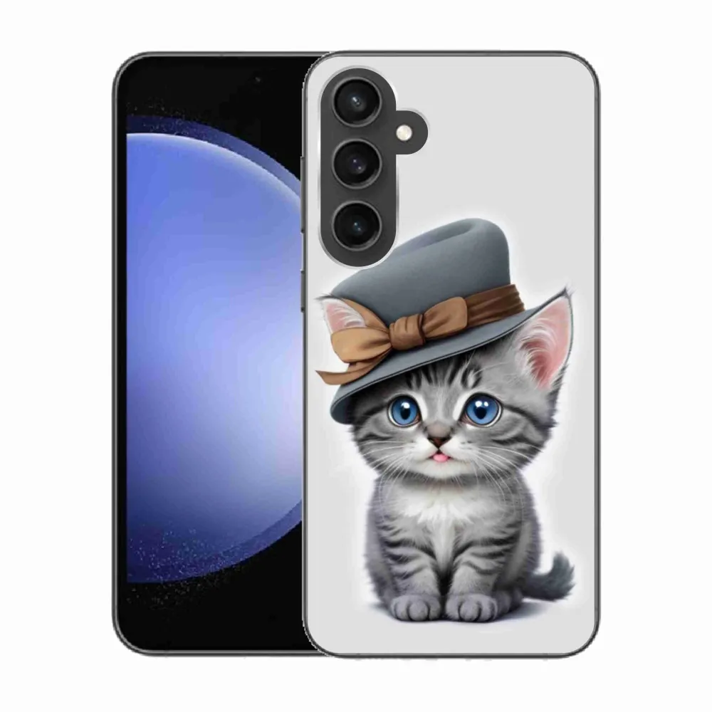 Pružný gelový obal mmCase s obrázkem na Samsung Galaxy S23 FE - kotě s kloboukem