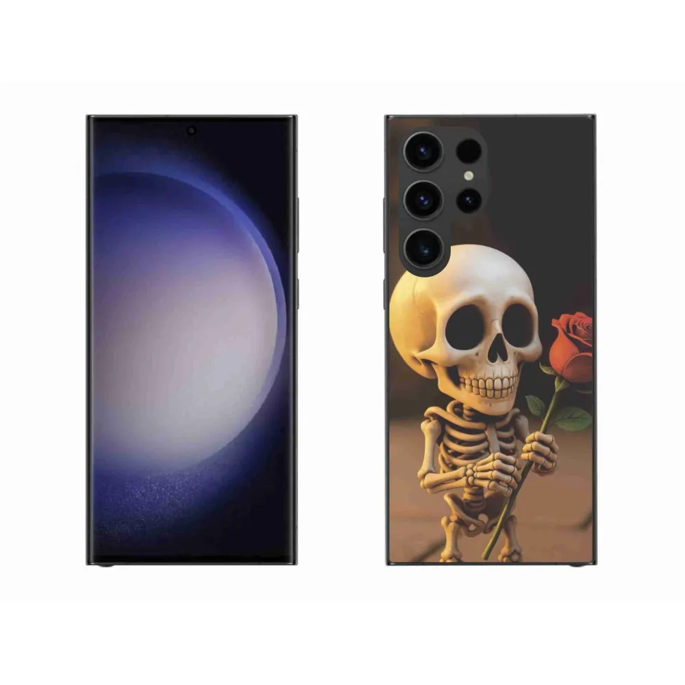 Pouzdro na Samsung Galaxy S23 Ultra 5G - kostlivec s růží poskytuje všechny výhody gelových obalů, a to v zajímavém designu.