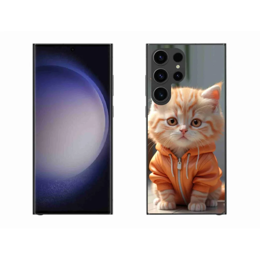 Kočičí pouzdro na Samsung Galaxy S23 Ultra 5G - kotě v mikině poskytuje všechny výhody gelových obalů, a to v zajímavém designu.