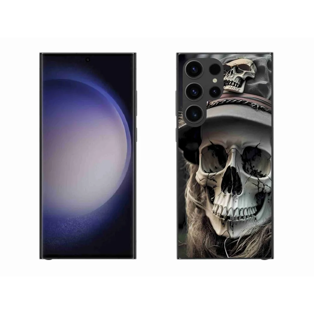 Pouzdro na Samsung Galaxy S23 Ultra 5G - temná lebka poskytuje všechny výhody gelových obalů, a to v zajímavém designu.
