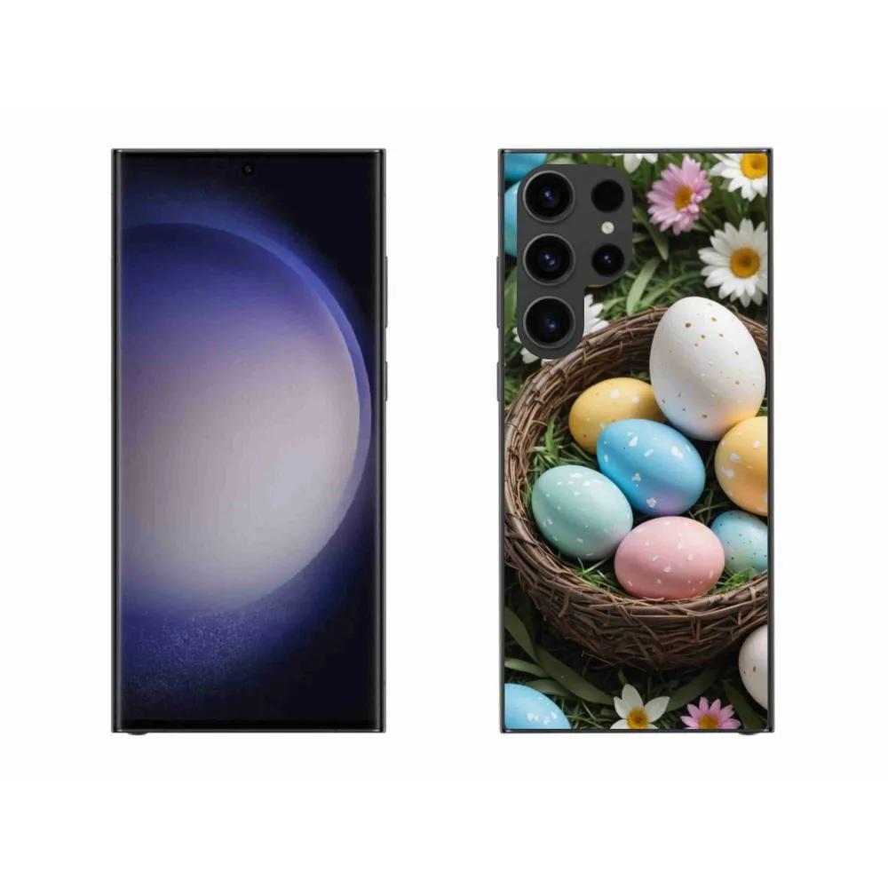 Velikonoční pouzdro na Samsung Galaxy S23 Ultra 5G - velikonoční vajíčka 2 poskytuje všechny výhody gelových obalů, a to v zajímavém designu.