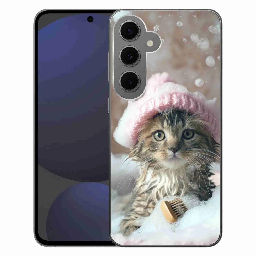 Pružný gelový obal mmCase s obrázkem na Samsung Galaxy S24 FE - kotě a koupel