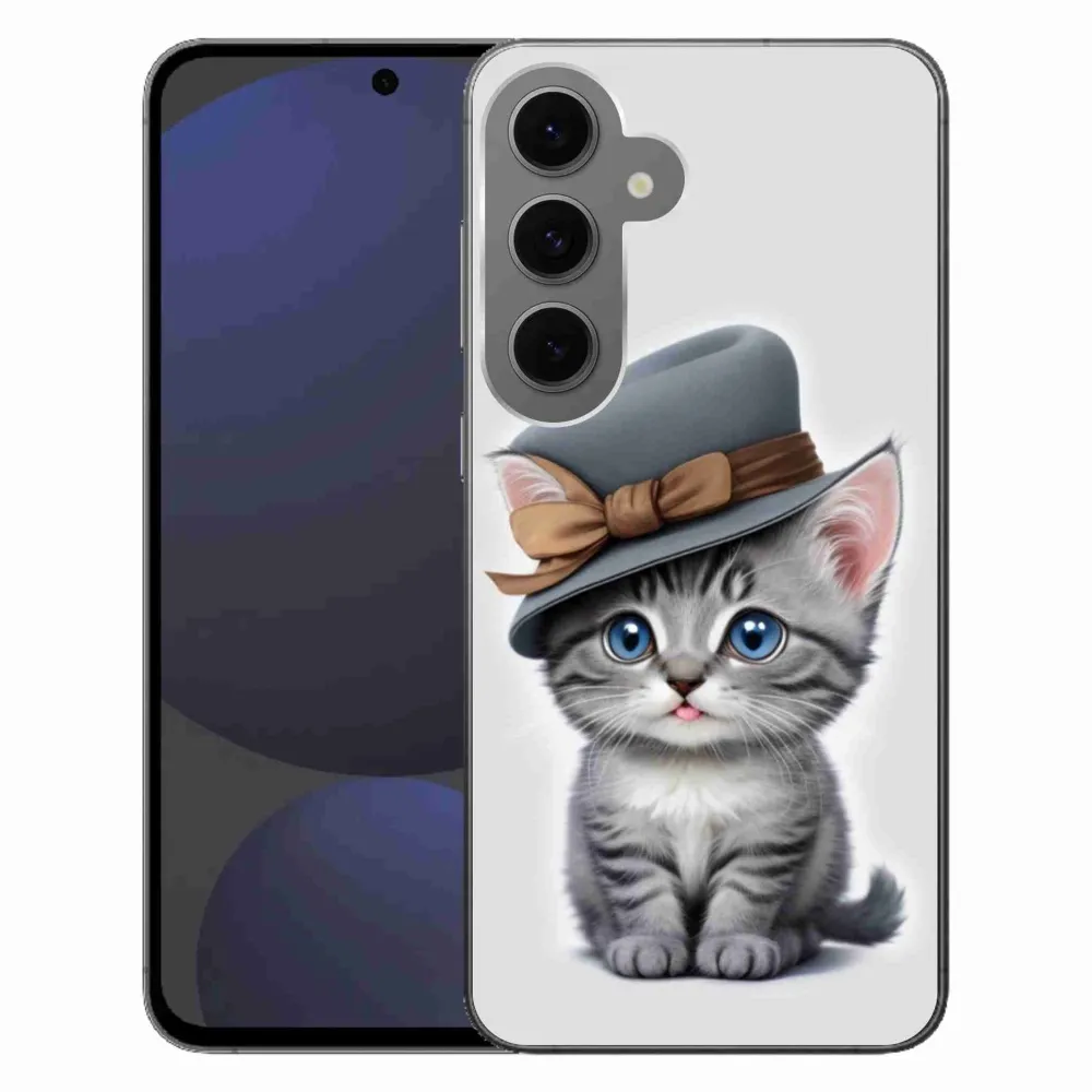 Pružný gelový obal mmCase s obrázkem na Samsung Galaxy S24 FE - kotě s kloboukem