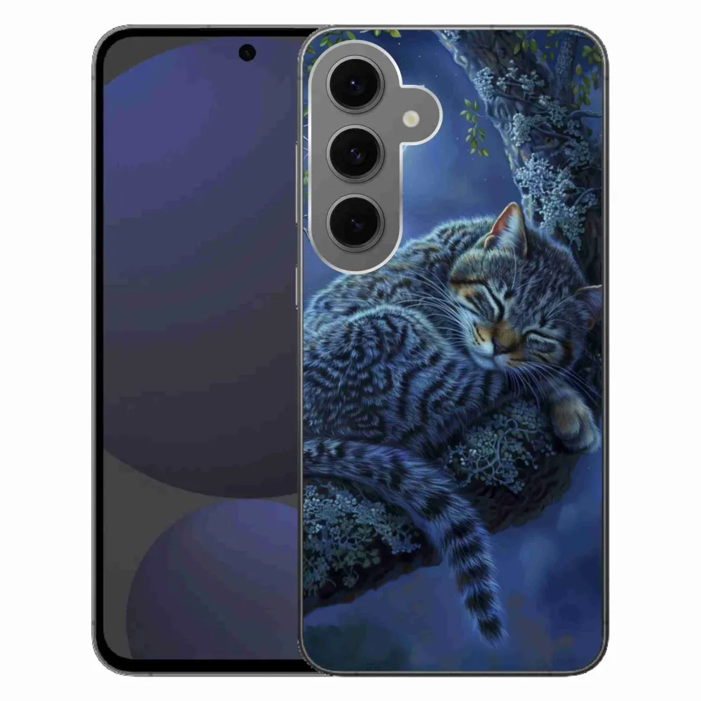 Kočičí pouzdro na Samsung Galaxy S24 FE - spící kočka poskytuje všechny výhody gelových obalů, a to v zajímavém designu.