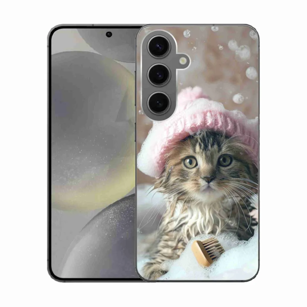 Kočičí pouzdro na Samsung Galaxy S24 - kotě a koupel poskytuje všechny výhody gelových obalů, a to v zajímavém designu.