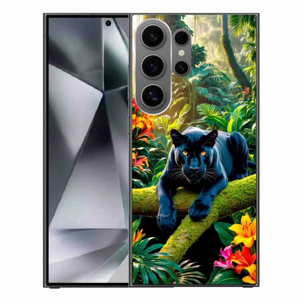 Zvířecí pouzdro na Samsung Galaxy S24 Ultra - černý panter v džungli poskytuje všechny výhody gelových obalů, a to v zajímavém designu.