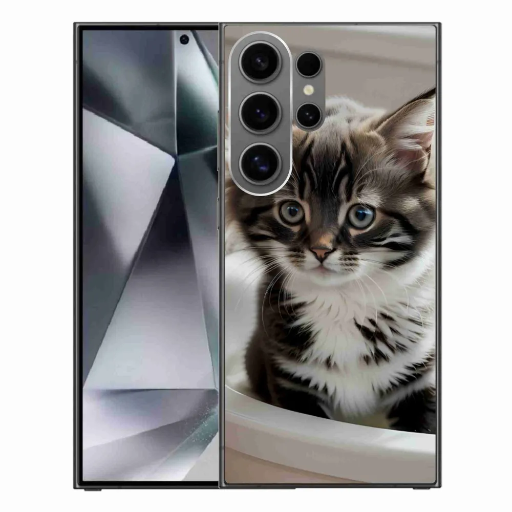Kočičí pouzdro na Samsung Galaxy S24 Ultra - zvědavé kotě poskytuje všechny výhody gelových obalů, a to v zajímavém designu.