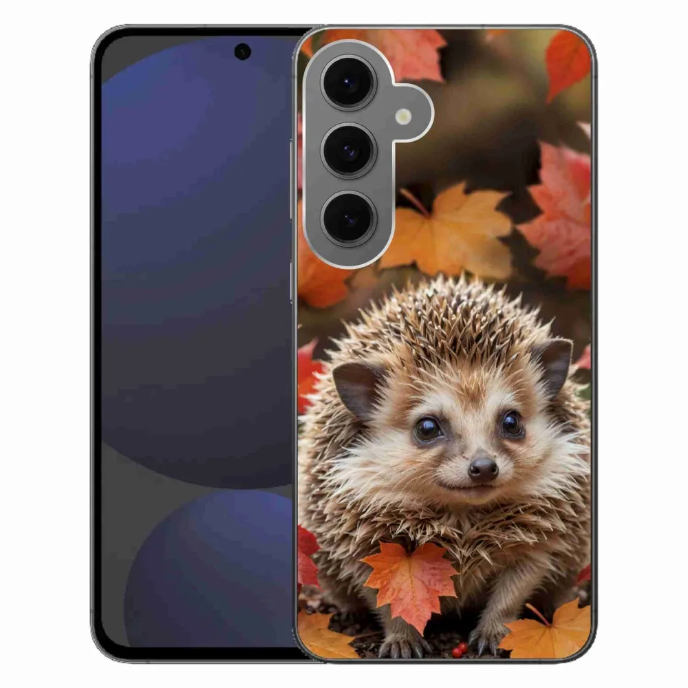 Zvířecí pouzdro na Samsung Galaxy S24 FE - ježek v listí poskytuje všechny výhody gelových obalů, a to v zajímavém designu.