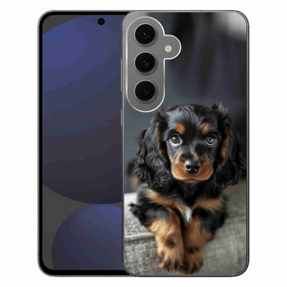 Gelový kryt mmCase na Samsung Galaxy S24FE - roztomilý dlouhosrstý jezevčík