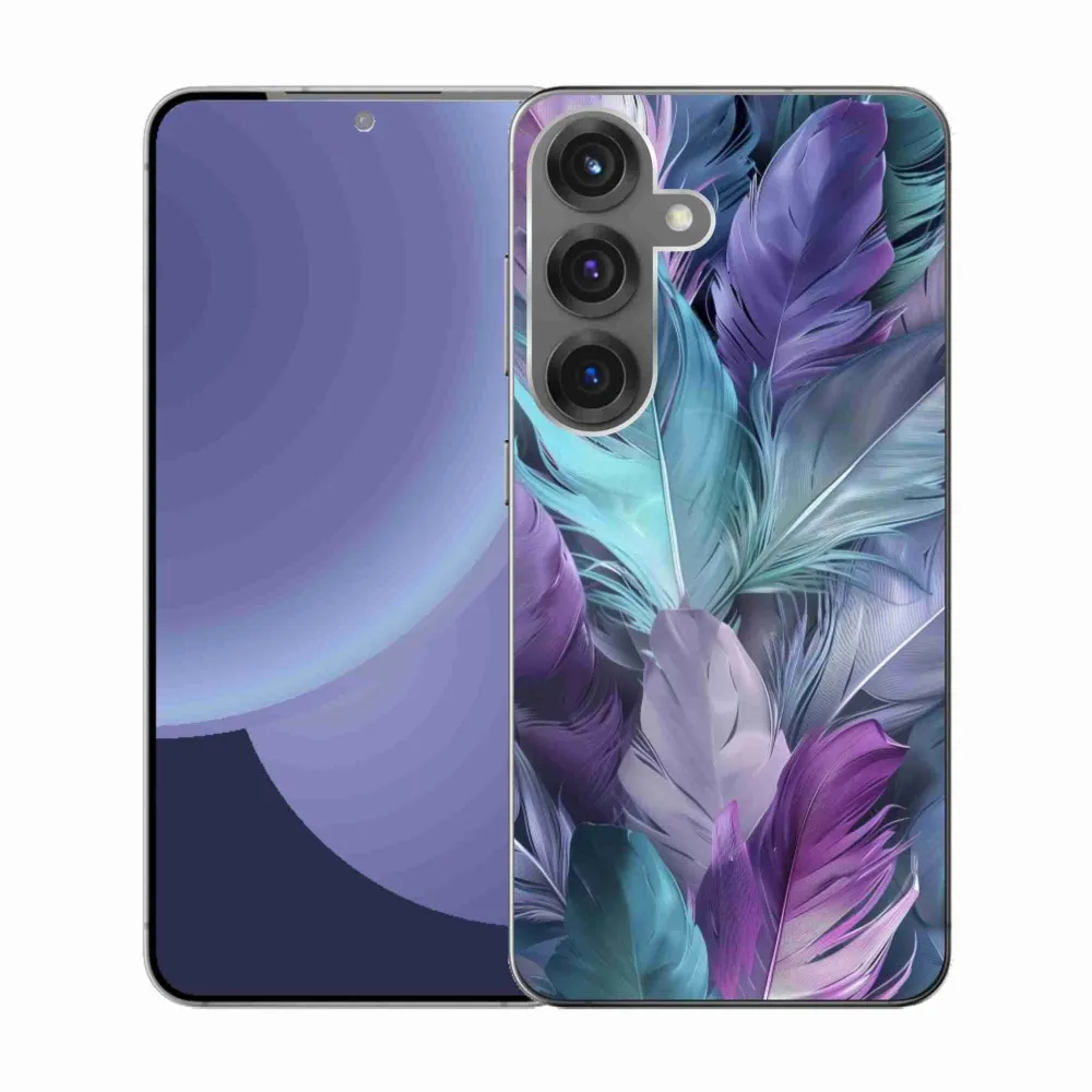 Pružný gelový obal mmCase s obrázkem na Samsung Galaxy S25 - barevné peří 2