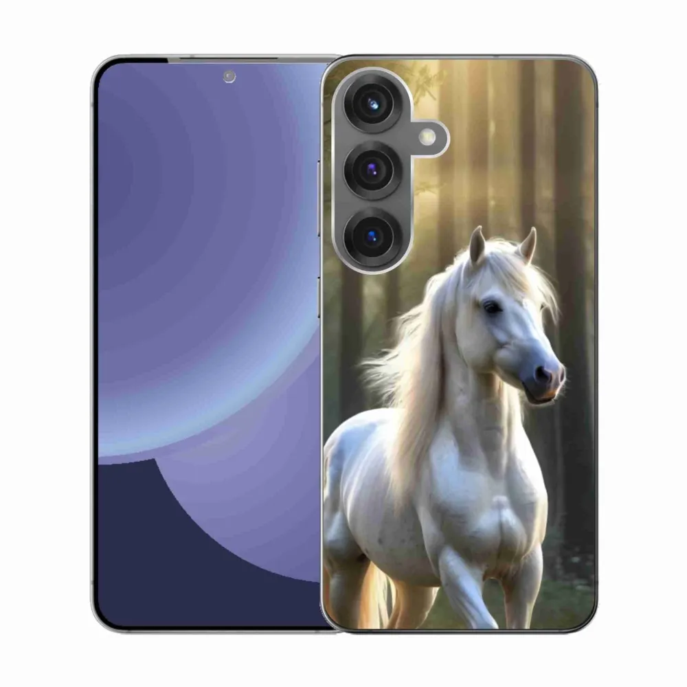 Pružný gelový obal mmCase s obrázkem na Samsung Galaxy S25 - bílý kůň 3