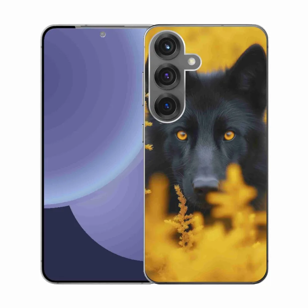 Pružný gelový obal mmCase s obrázkem na Samsung Galaxy S25 - černý vlk 2
