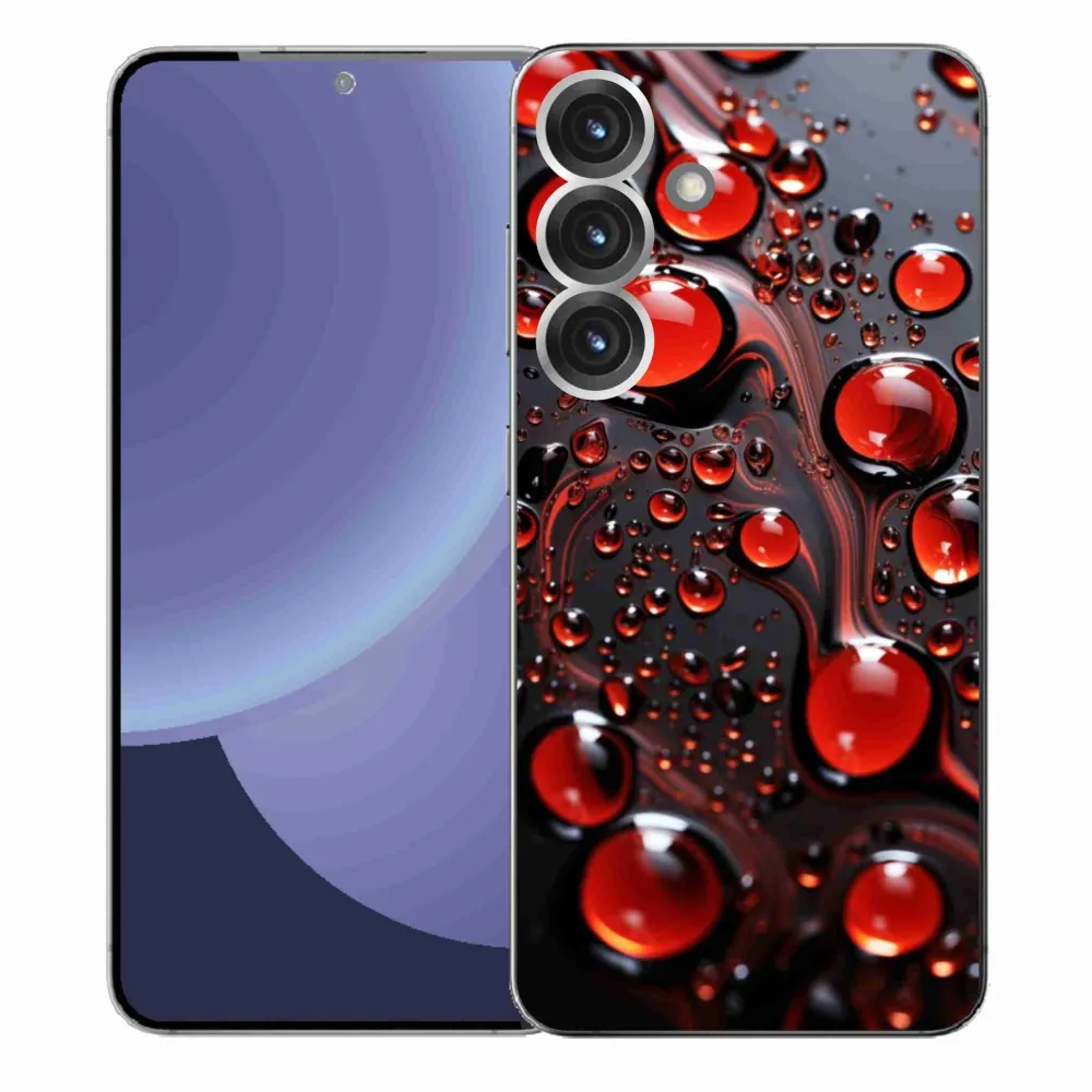 Pružný gelový obal mmCase s obrázkem na Samsung Galaxy S25+ - červené kapky 2