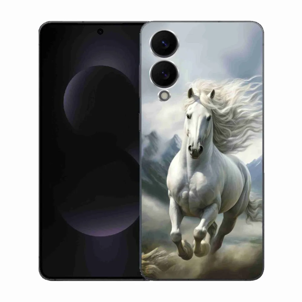 Pružný glový obal mmCase s obrázkem na Samsung Galaxy S25 Edge - běžící bílý kůň 3