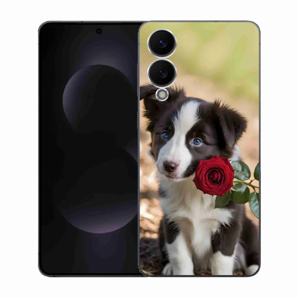 Psí pouzdro na Samsung Galaxy S25 Edge - roztomilá border kolie s růží poskytuje všechny výhody gelových obalů, a to v zajímavém designu.