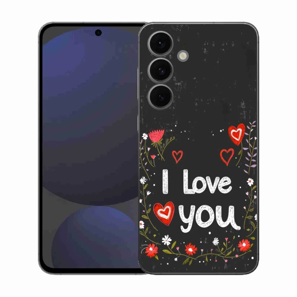 Pružný gelový obal mmCase s obrázkem na Samsung Galaxy S25 FE - I love you černé pozadí