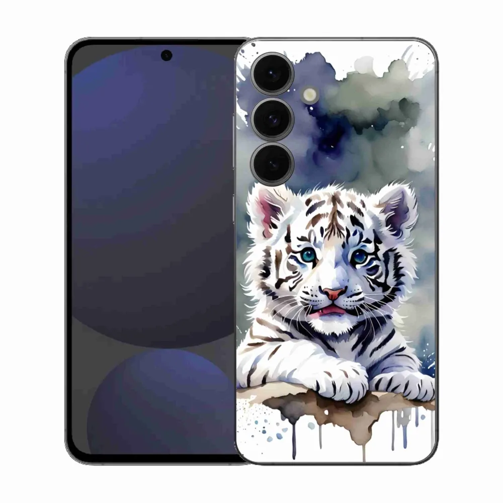 Psí pouzdro na Samsung Galaxy S25 FE - mládě bílého tygra poskytuje všechny výhody gelových obalů, a to v zajímavém designu.