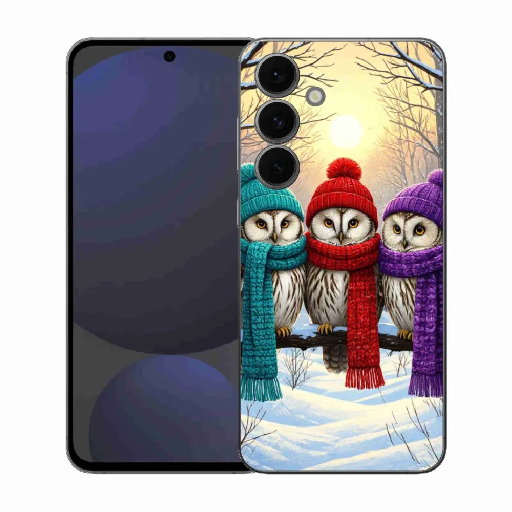 Vánoční pouzdro na Samsung Galaxy S25 FE - soví přátelé poskytuje všechny výhody gelových obalů, a to v zajímavém designu.