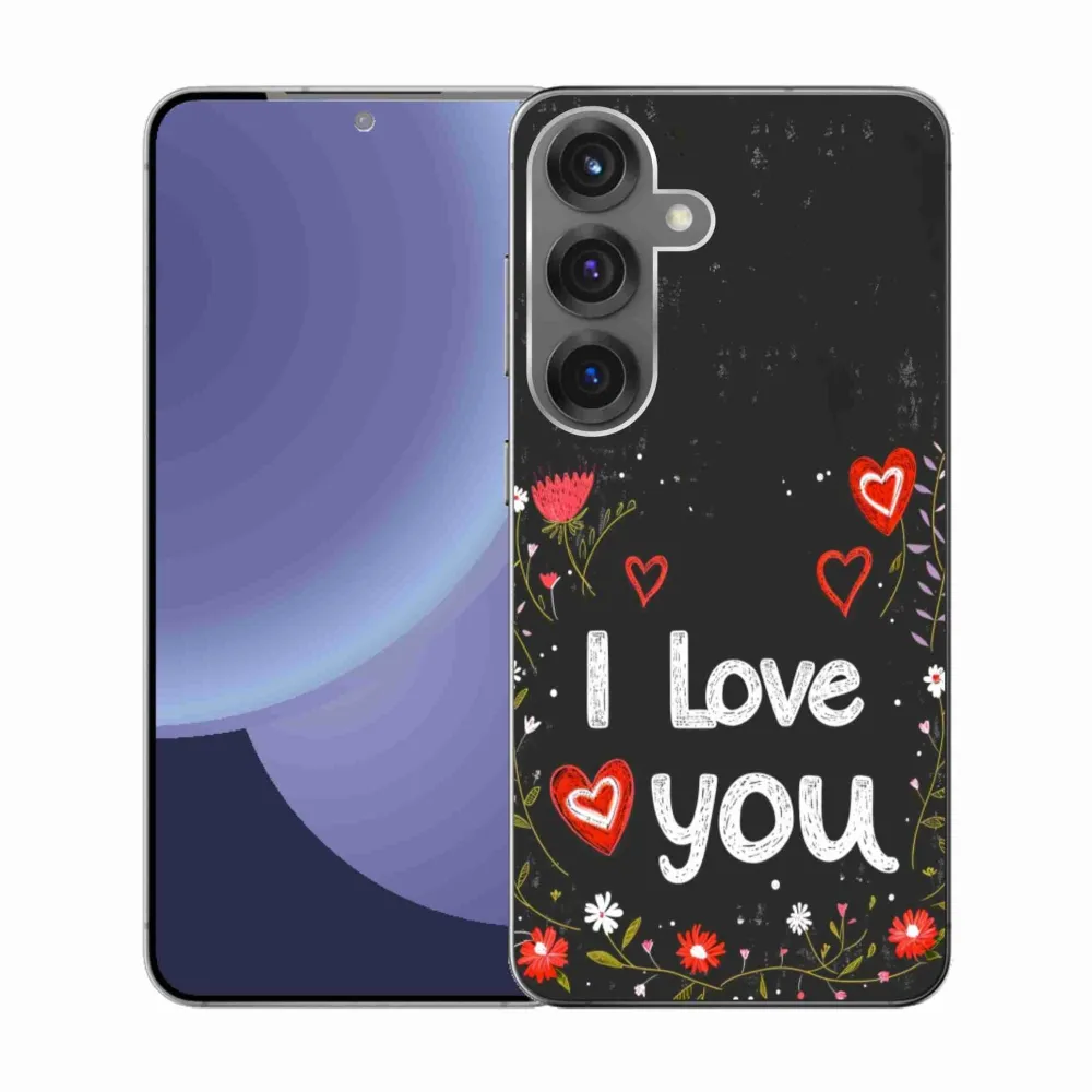 Pružný gelový obal mmCase s obrázkem na Samsung Galaxy S25 - I love you černé pozadí