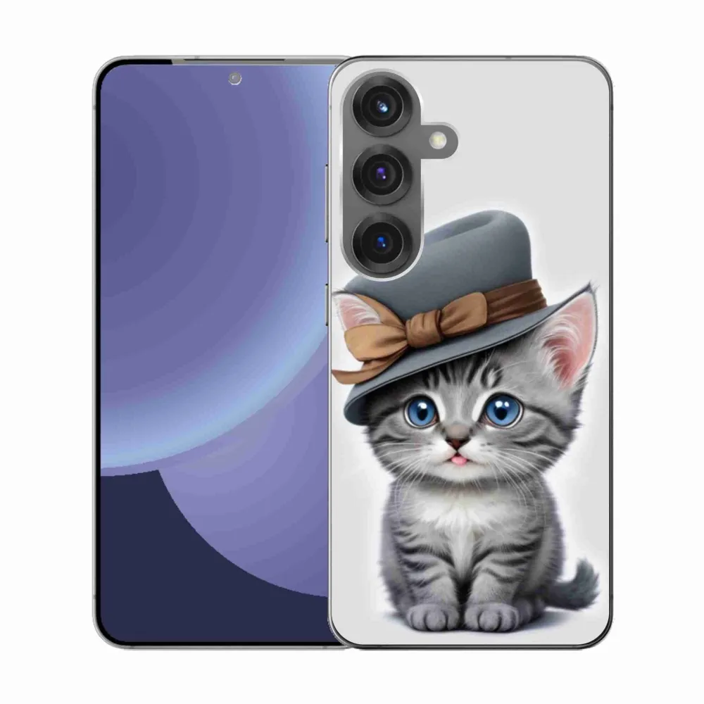 Pružný gelový obal mmCase s obrázkem na Samsung Galaxy S25 - kotě s kloboukem