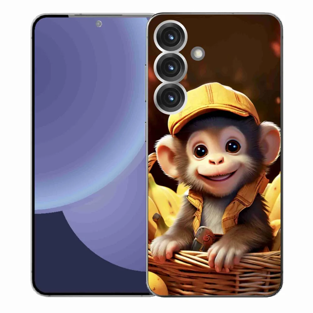 Zvířecí pouzdro na Samsung Galaxy S25 Plus - opice v košíku poskytuje všechny výhody gelových obalů, a to v zajímavém designu.