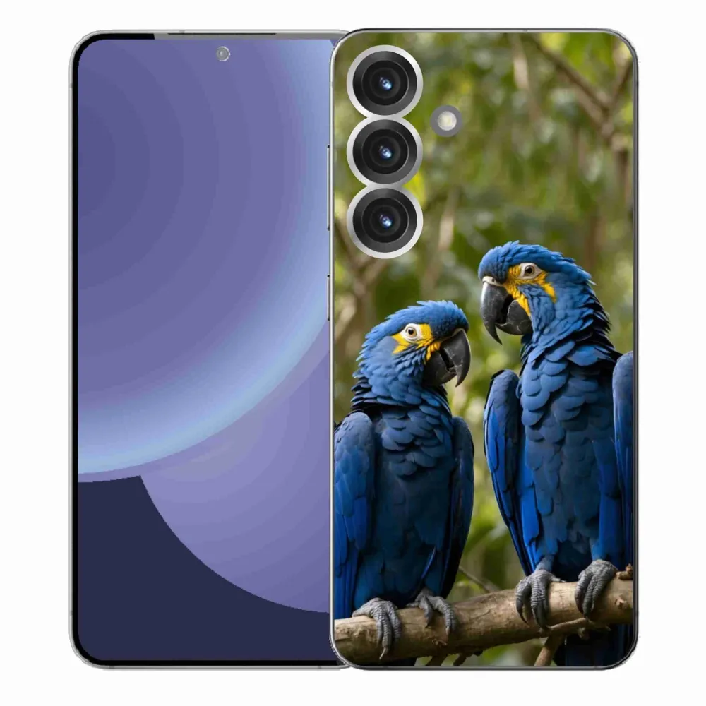 Ptačí pouzdro na Samsung Galaxy S25 Plus - papagájové duo poskytuje všechny výhody gelových obalů, a to v zajímavém designu.