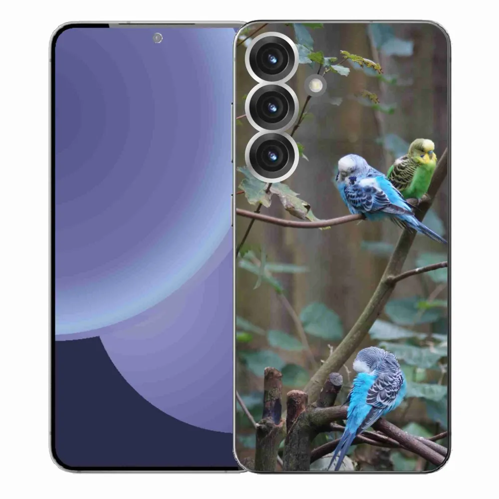 Ptačí pouzdro na Samsung Galaxy S25 Plus - papoušci na větvi poskytuje všechny výhody gelových obalů, a to v zajímavém designu.