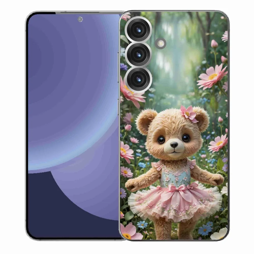 Zvířecí pouzdro na Samsung Galaxy S25 Plus - roztomilý medvídek v květinách poskytuje všechny výhody gelových obalů, a to v zajímavém designu.