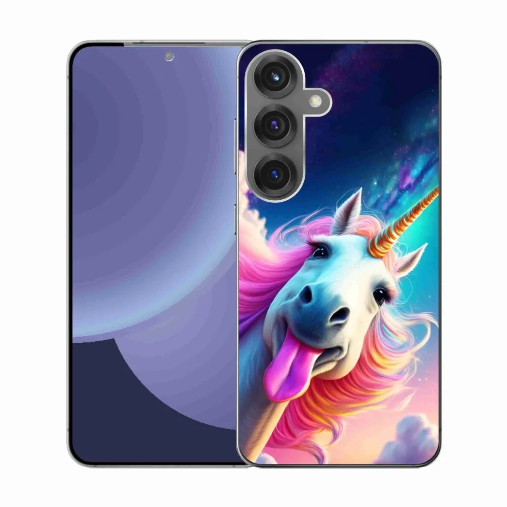 Pružný glový obal mmCase s obrázkem na Samsung Galaxy S25 - šílený jednorožec