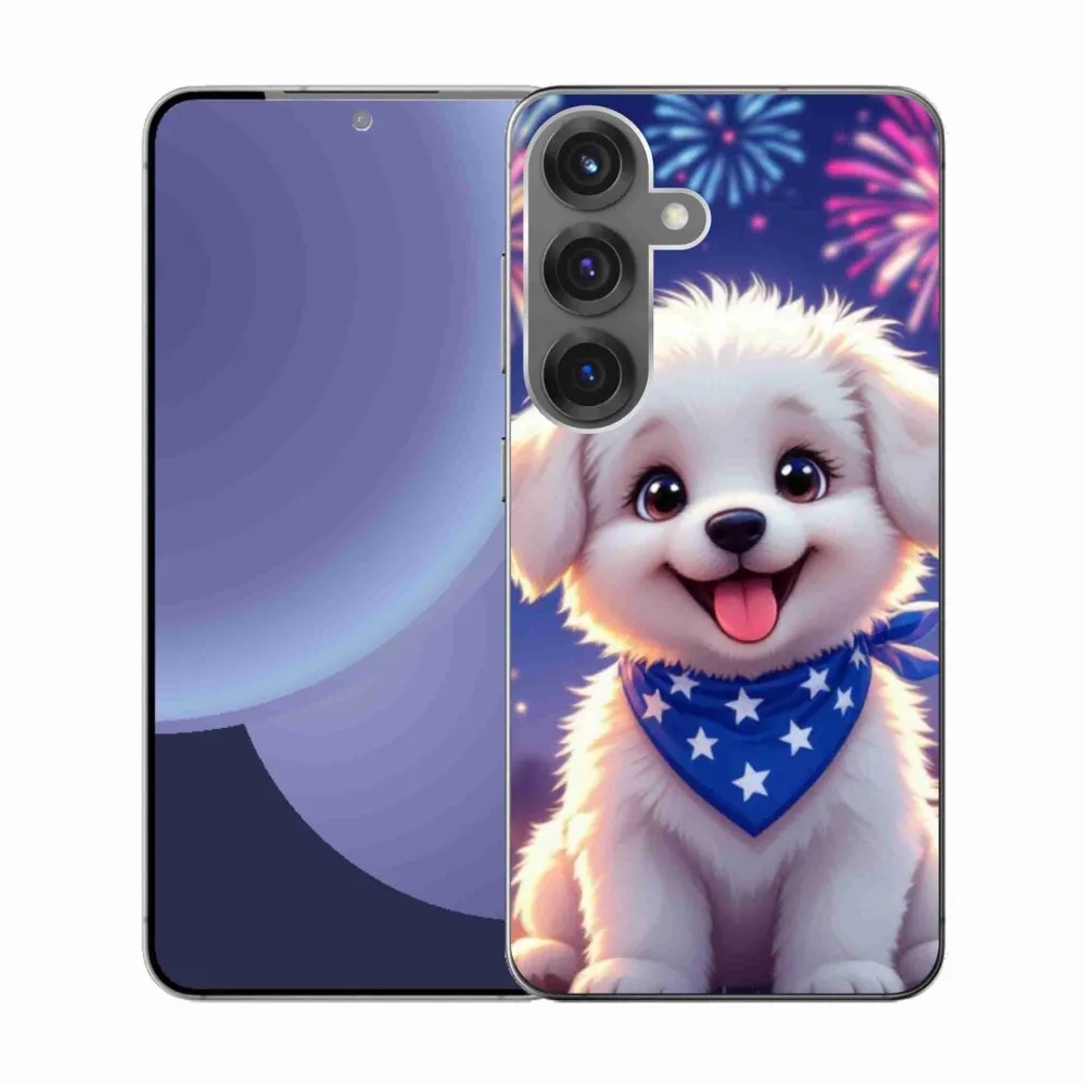 Pružný gelový obal mmCase s obrázkem na Samsung Galaxy S25 - slavnostní štěně