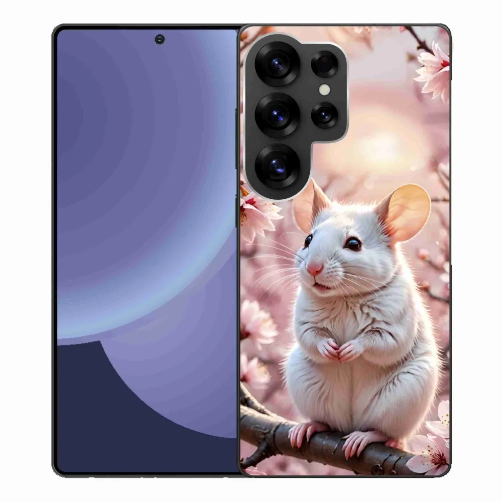 Zvířecí pouzdro na Samsung Galaxy S25 Ultra - bílá myš na větvi poskytuje všechny výhody gelových obalů, a to v zajímavém designu.