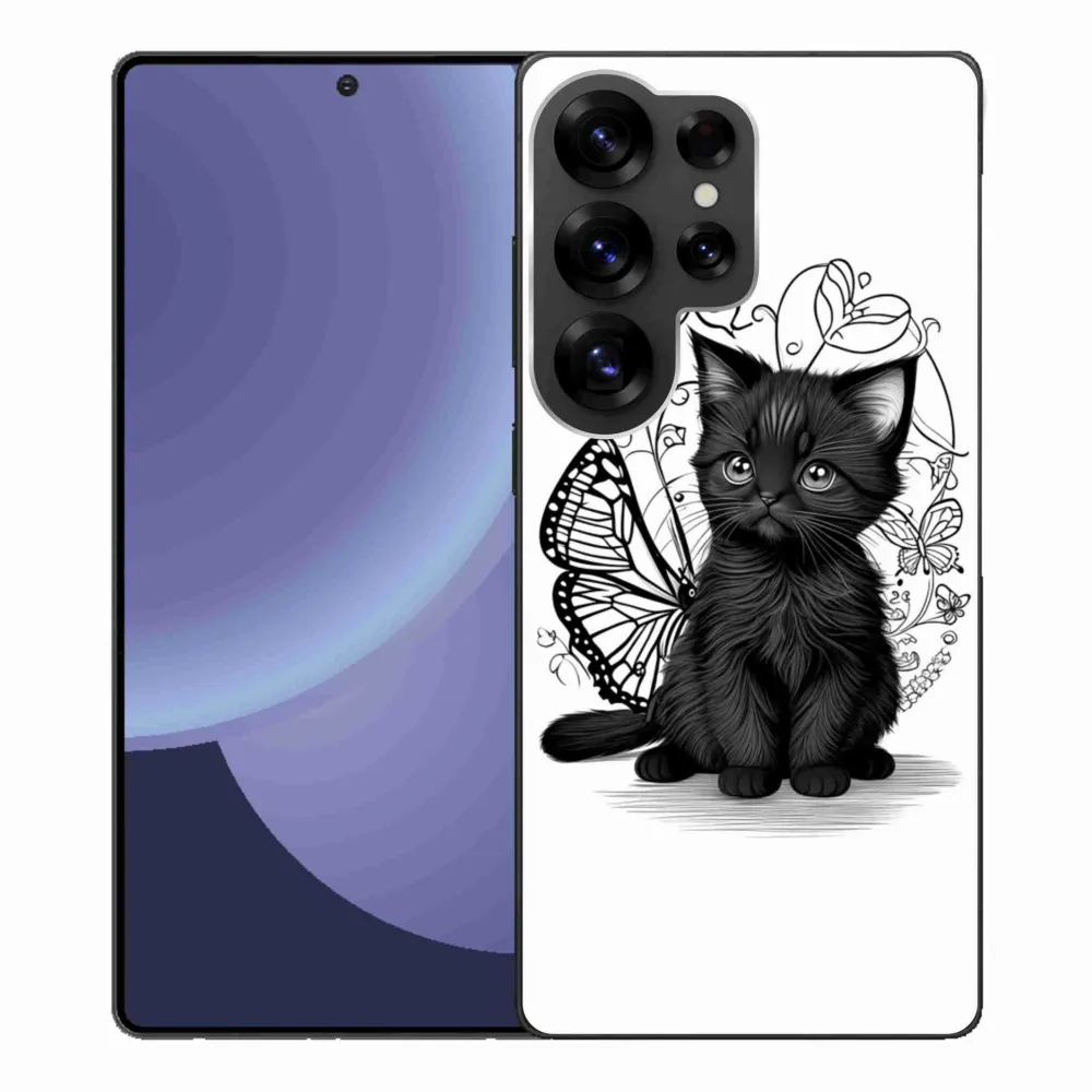 Kočičí pouzdro na Samsung Galaxy S25 Ultra - černé kotě poskytuje všechny výhody gelových obalů, a to v zajímavém designu.