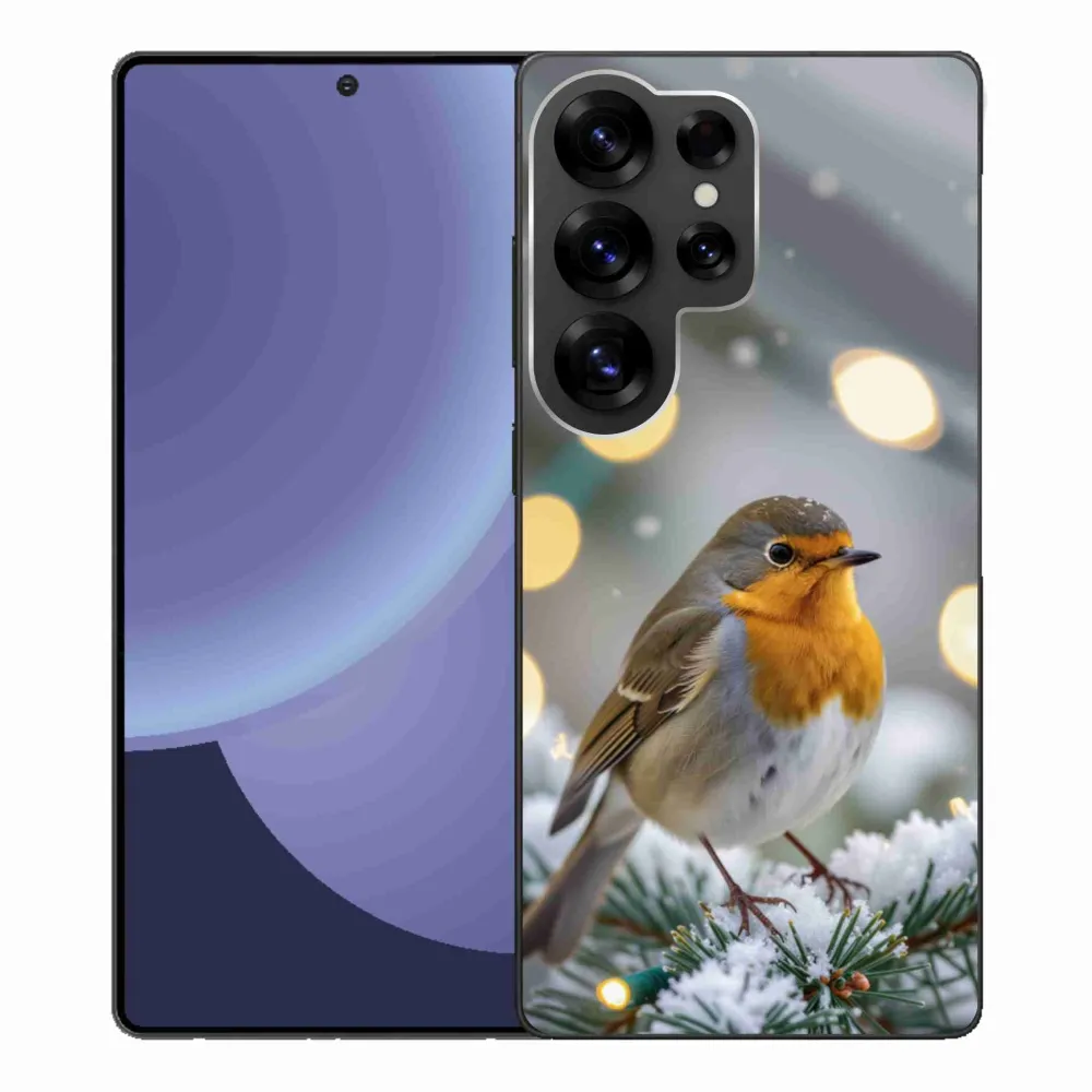 Ptačí pouzdro na Samsung Galaxy S25 Ultra - červenka v zimě poskytuje všechny výhody gelových obalů, a to v zajímavém designu.