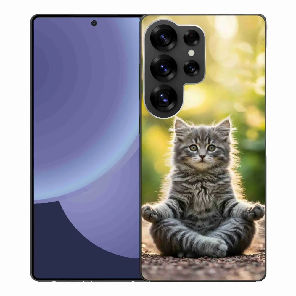 Kočičí pouzdro na Samsung Galaxy S25 Ultra - meditující kotě poskytuje všechny výhody gelových obalů, a to v zajímavém designu.